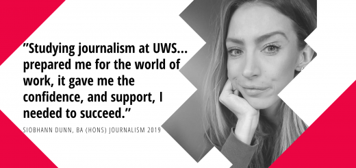 Siobhann’s advice to anyone who wants to follow in her footsteps is simple: “Just work really hard. Studying journalism at UWS was so important because it prepared me for the world of work, it gave me the confidence, and support, I needed to succeed.”