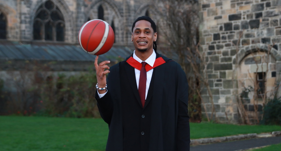 A top basketball player has told of his joy at landing his university degree – after two years of juggling studies, playing professional sport and becoming a father for the first time.
