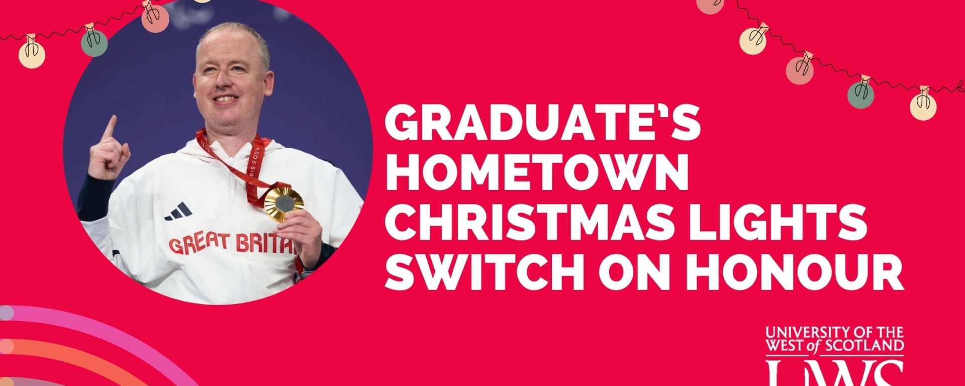 A University of the West of Scotland former student has rounded off an incredible year of achievement by switching on the Christmas lights in his hometown of Hamilton.