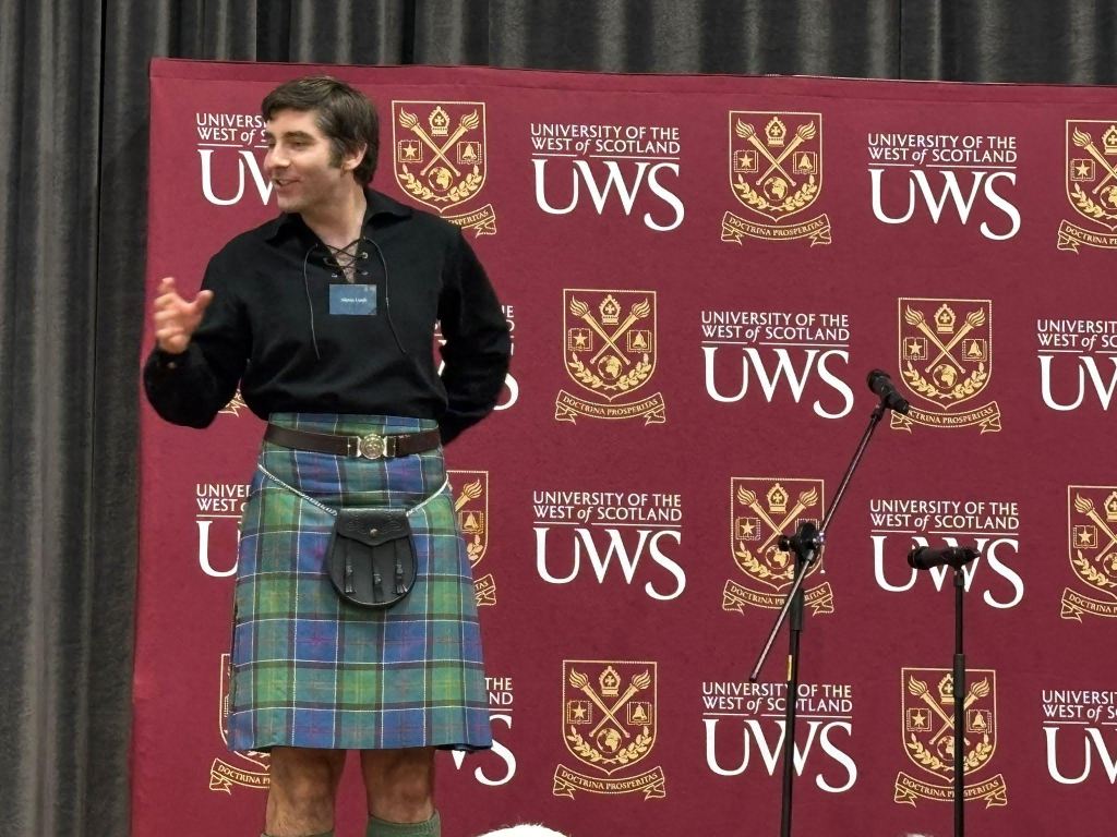 The evening was brought to a close with UWS graduate, poet, performer and Scriever at the Robert Burns Birthplace Museum in Alloway, Simon Lamb. His role celebrates Burns’ legacy and Scottish literature through the creation of new work.